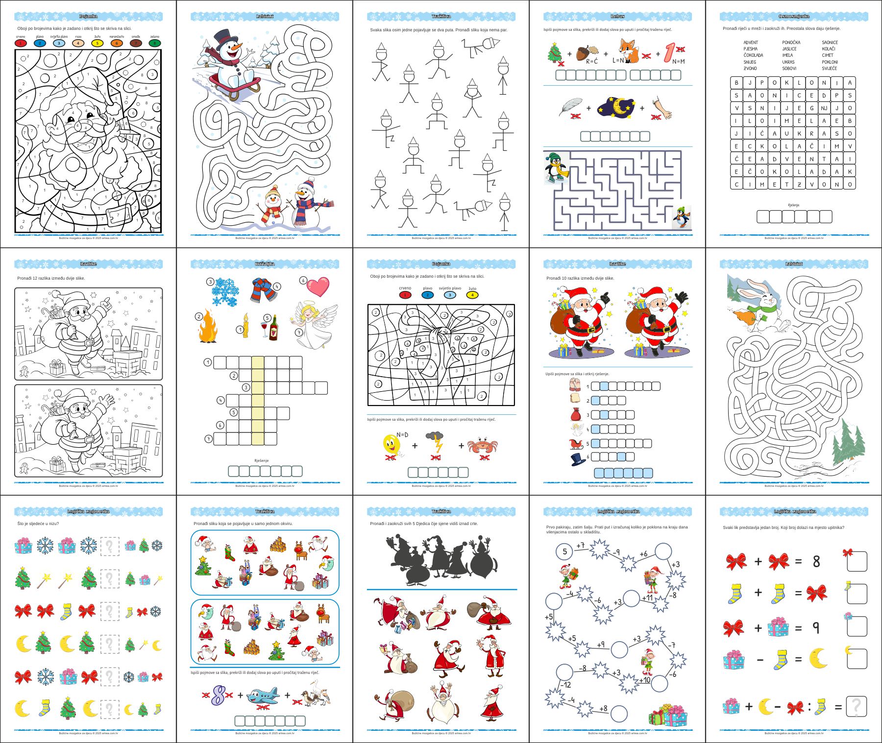 Božićne mozgalice za djecu - 40 listića za razvoj koncentracije, pažnje, zapažanja, motorike s rješenjima.
