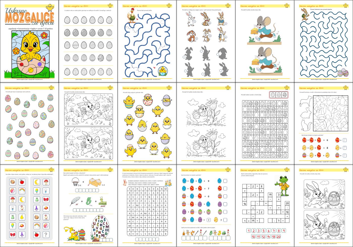 Uskrsne mozgalice za djecu - 44 listića za razvoj koncentracije, pažnje, zapažanja, motorike s rješenjima.