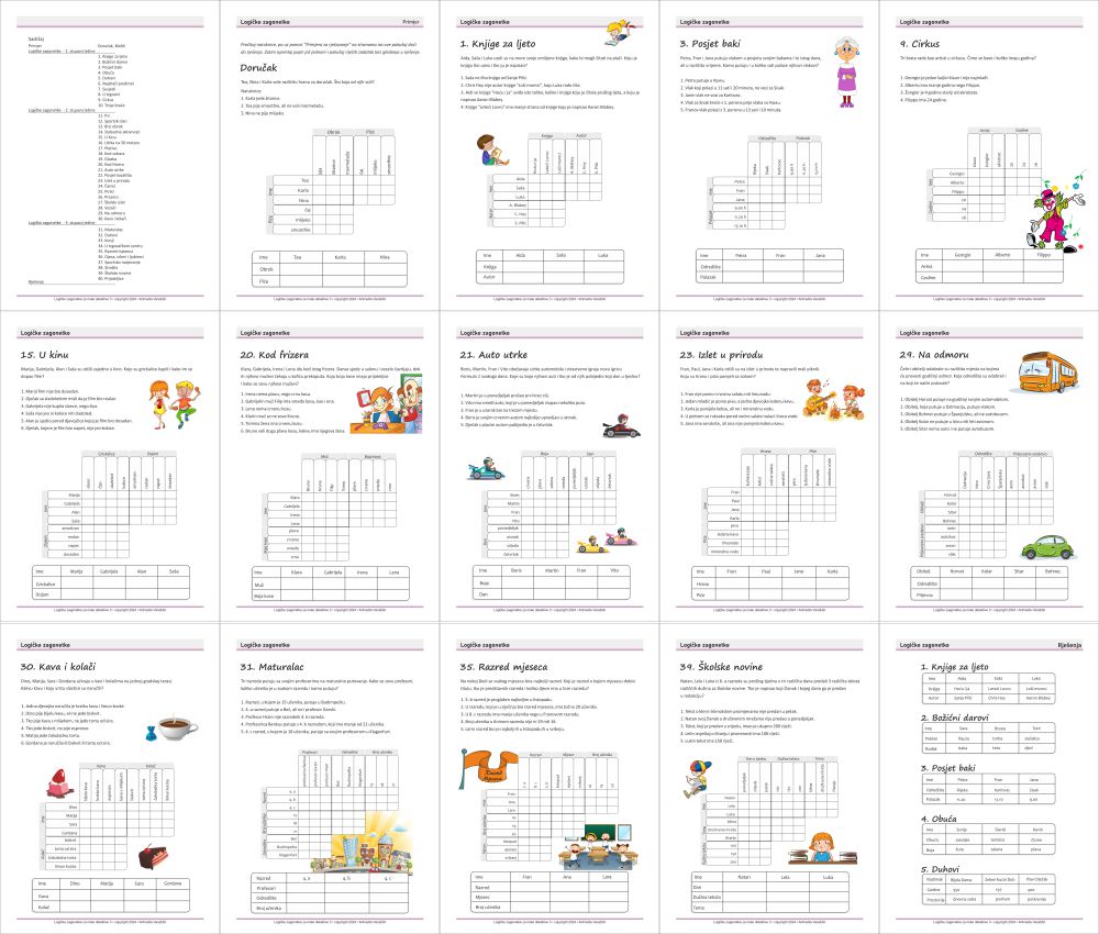 Logičke zagonetke za male detektive 3 - 40 logičkih zagonetki za uvježbavanje koncentracije, razvijanje kritičkog razmišljanja kao i logičkog zaključivanja u PDF formatu za ispis na pisač.